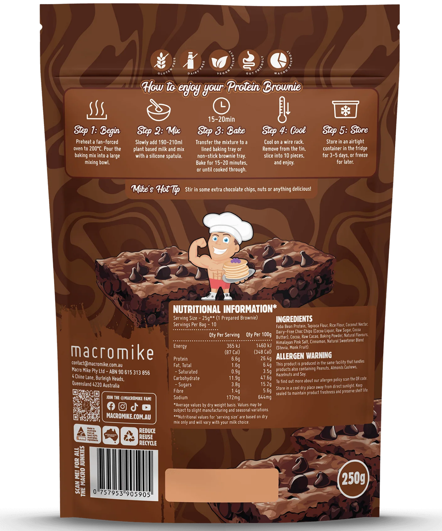 Brownies are simply one of the foods that are sorely missed when switching to a healthier diet. With all the butter, refined cane sugar and bleached wheat and milk products, your average brownie packet mix does produce a tasty product. But at a cost to your health. This is where Macro Mike Brownies step into the equation, with a plant-based gluten-free product that is high in protein!