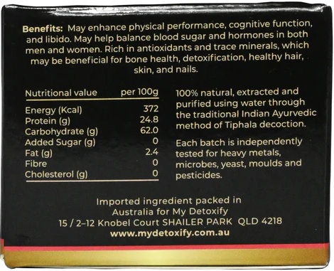 MyDetoxify Organic Shilajit Resin Nutritional Information