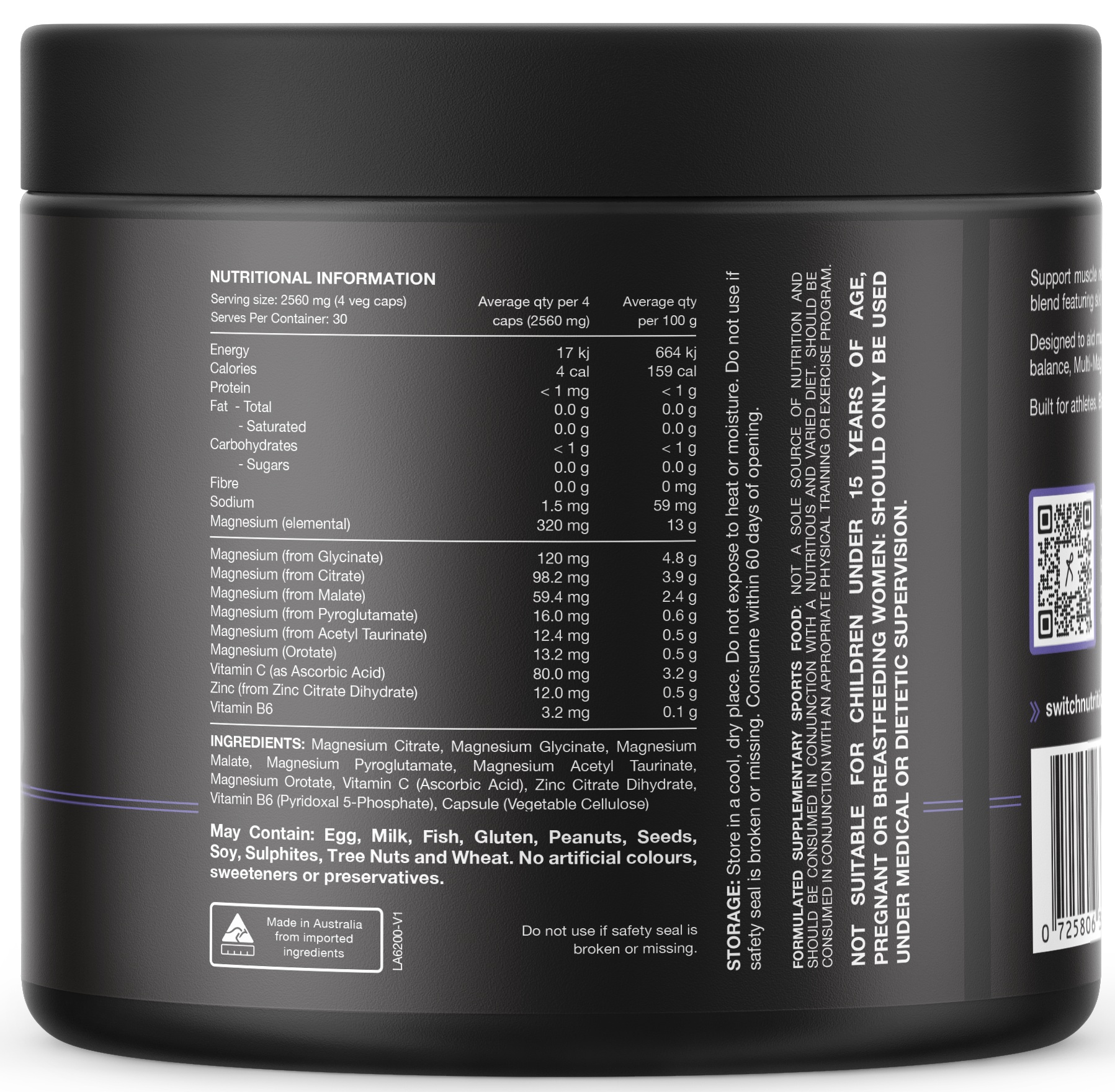 Switch Nutrition Multi-Mag is a complete magnesium recovery formula designed to support athletes with energy, focus, muscle function and quality sleep. It combines six bioavailable forms of magnesium with Vitamin B6, Vitamin C and Zinc to deliver superior absorption and performance benefits. With 320mg of elemental magnesium per serve, Multi-Mag helps your body recover faster and perform at its peak.