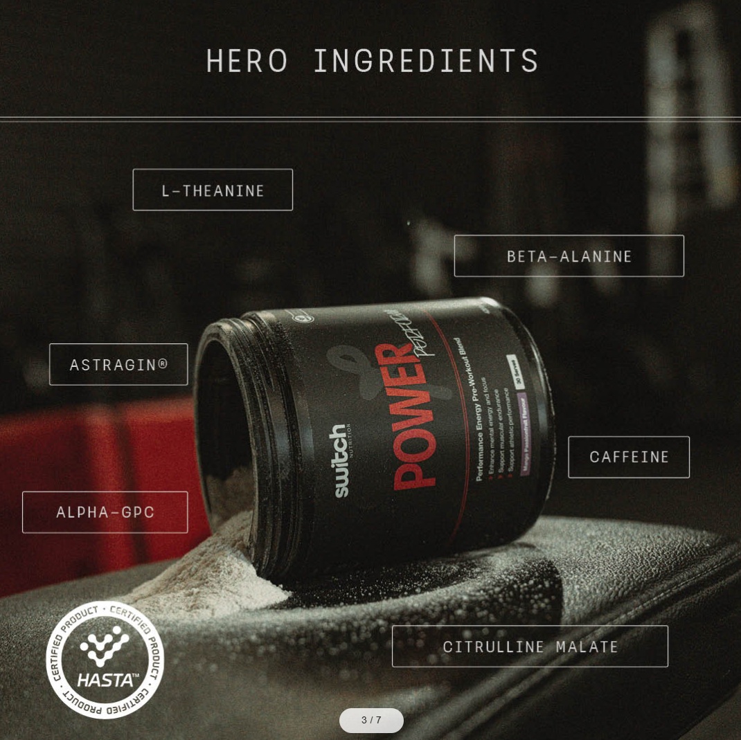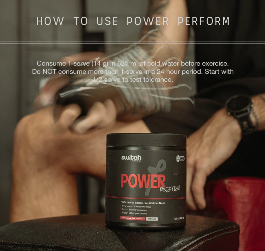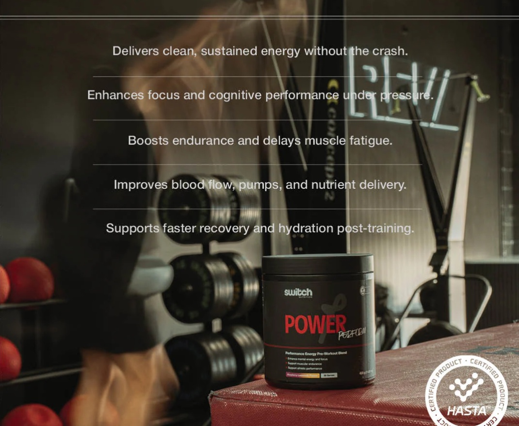 Engineered for athletes who demand more, this powerhouse pre-workout delivers clean, sustained energy, enhanced endurance and next-level blood flow for peak performance. Clinically dosed with research-backed ingredients, Switch Power Perform helps buffer fatigue, boost nitric oxide and sharpen focus without overstimulation. Designed and made in Australia, Power Perform is HASTA Certified and trusted by serious athletes for results that go beyond the standard!